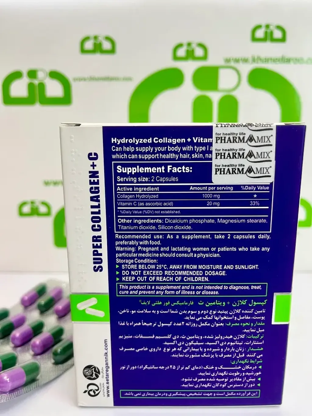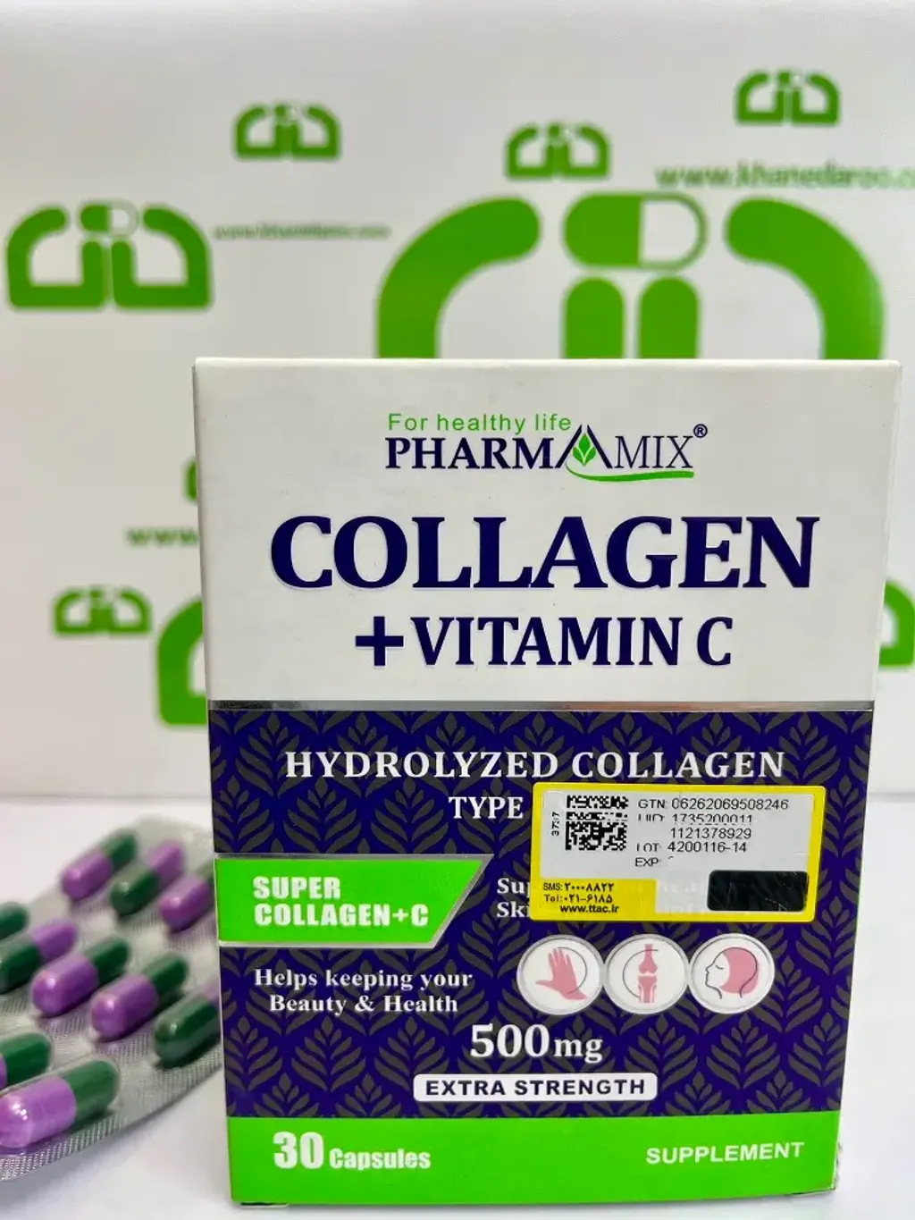 کپسول کلاژن فارمامیکس (Pharmamix Collagen) یک مکمل تخصصی برای سلامت پوست، مو، ناخن و مفاصل است. این محصول با داشتن کلاژن هیدرولیز شده، ویتامین C و ترکیبات مؤثر دیگر، به بازسازی بافتهای بدن کمک میکند و روند پیری پوست را کاهش میدهد.کپسول کلاژن فارمامیکس با تحریک تولید طبیعی کلاژن در بدن، باعث افزایش استحکام پوست، کاهش چینوچروک و تقویت رشد مو و ناخنها میشود.