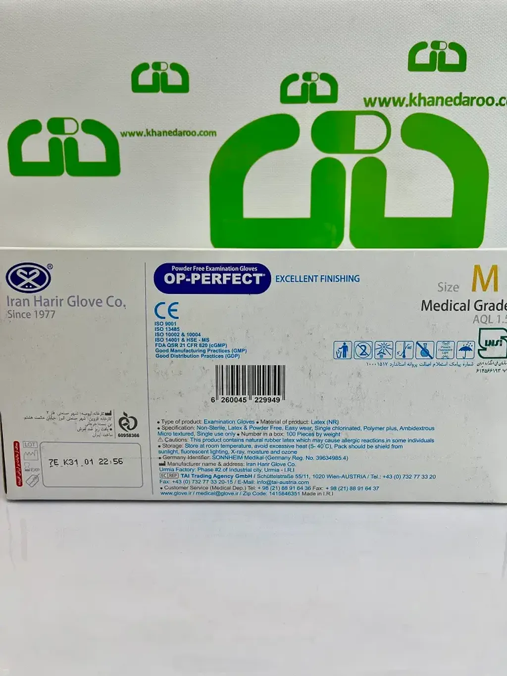 دستکش لاتکس یکبار مصرف اوپی پرفکت (OP Perfect) محصول شرکت معتبر ایران حریر است که برای محافظت از دستها در برابر آلودگی، مواد شیمیایی سبک و عوامل بیماریزا طراحی شده است. این دستکشها با کیفیت بالا و انعطافپذیری عالی، انتخابی ایدهآل برای استفاده در محیطهای پزشکی، آزمایشگاهی، آرایشی و حتی مصارف خانگی هستند.
