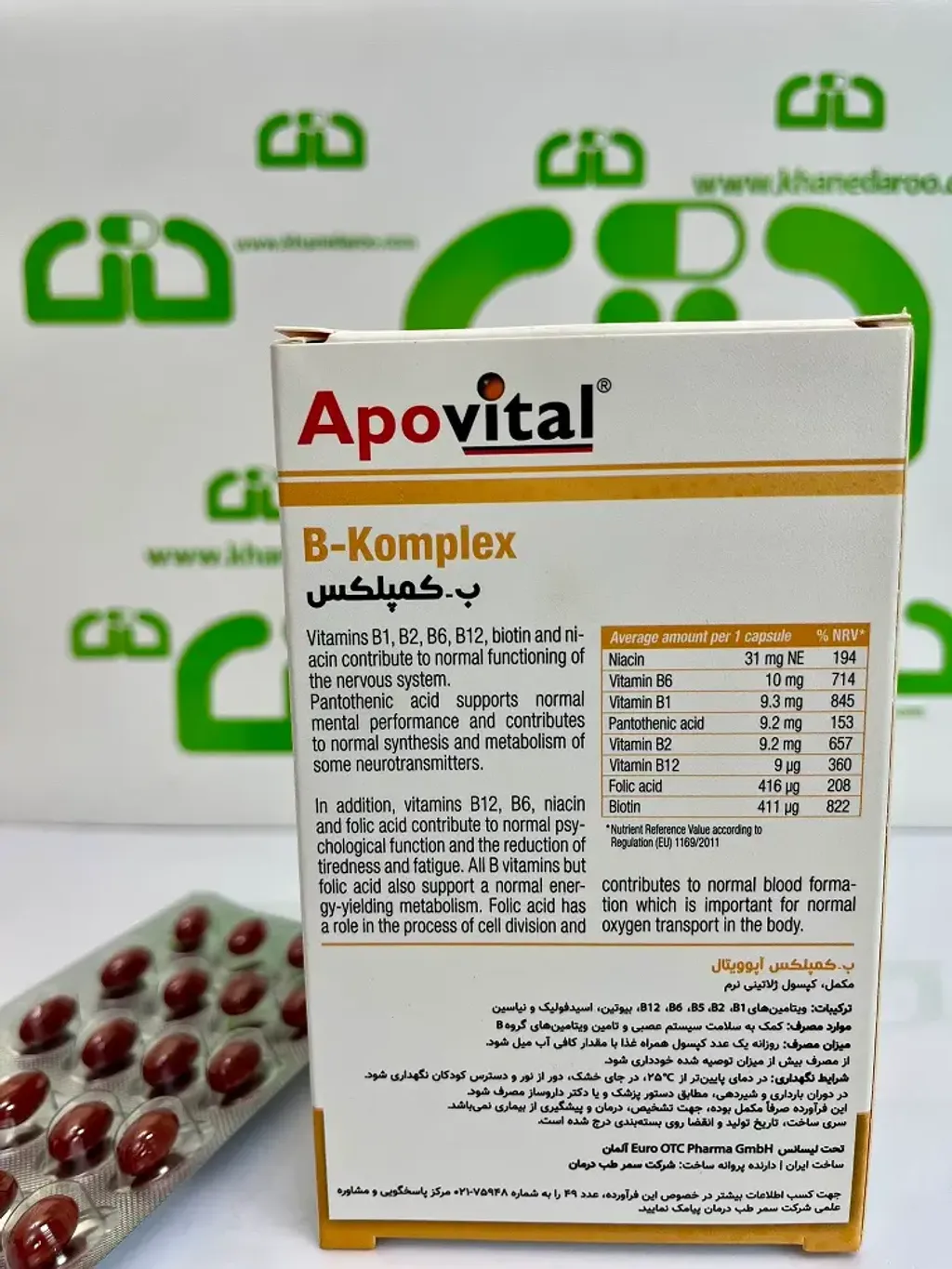 کپسول ب کمپلکس آپوویتال (Apovital B-Complex) مکملی مؤثر و کامل از گروه ویتامینهای B است که نقش مهمی در تقویت انرژی، بهبود تمرکز ذهنی، سلامت پوست، مو و ناخن، و کاهش خستگی دارد.
