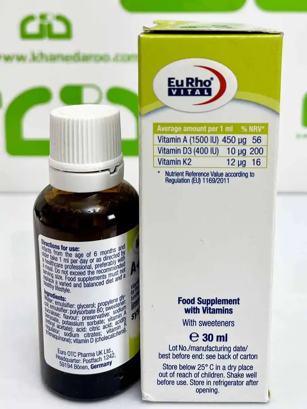معرفی قطره آ د۳ کا۲ یوروویتال ۳۰ میلیلیتری