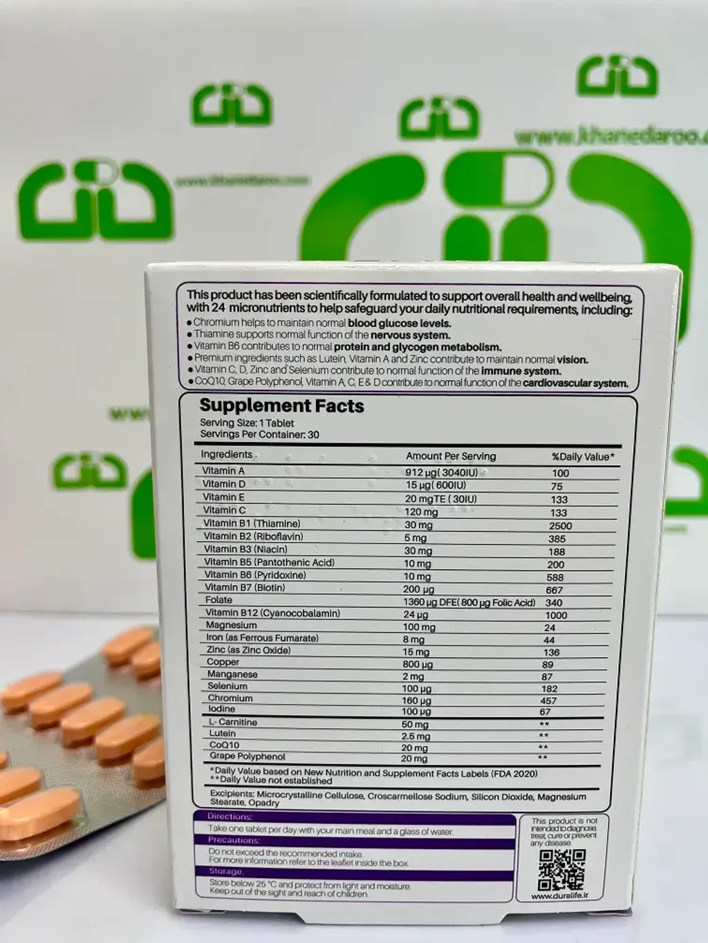 قرص مولتی ویتامین دورالایف کیدنی فاران شیمی 30 عددی
