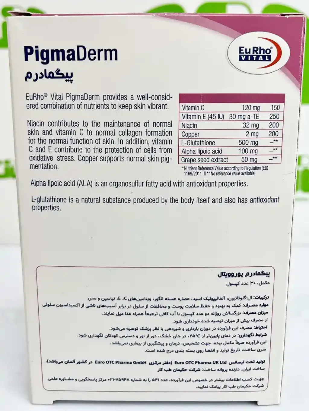 معرفی کپسول پیگمادرم یوروویتال ۳۰ عددی
