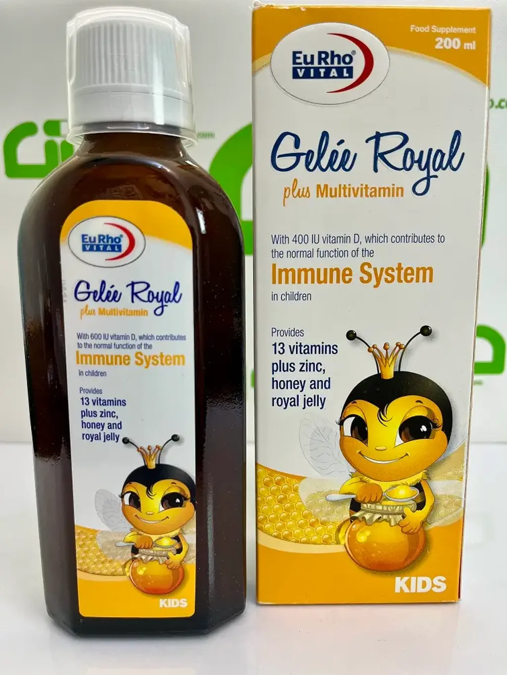 شربت ژل رویال پلاس مولتی ویتامین یوروویتال (Eurho Vital Royal Jelly Plus Multivitamin Syrup) مکملی انرژیبخش و تقویتی برای افزایش شادابی، تقویت سیستم ایمنی و بهبود عملکرد ذهنی و جسمی است. این شربت حاوی ترکیبی ارزشمند از ژل رویال طبیعی، ویتامینهای گروه B، ویتامین C، و مواد معدنی مهم است که باعث افزایش انرژی، کاهش خستگی و تقویت بدن در دوران نقاهت یا استرس میشود.