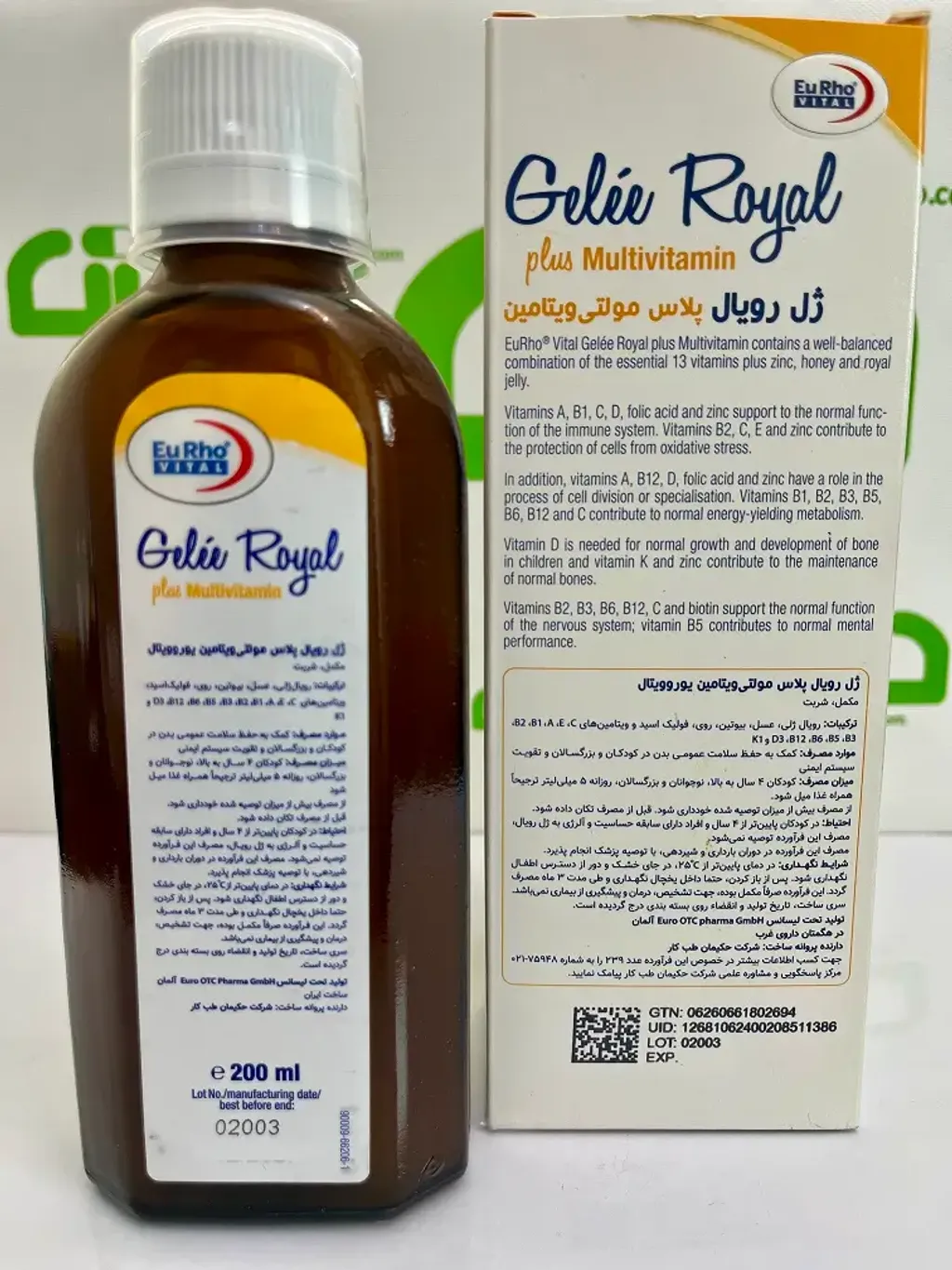 شربت ژل رویال پلاس مولتی ویتامین یوروویتال 200 میلی لیتری