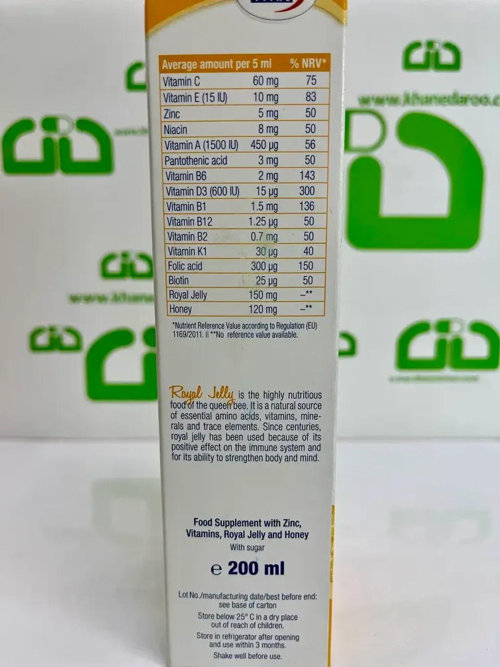ترکیبات مؤثر شربت ژل رویال پلاس یوروویتال