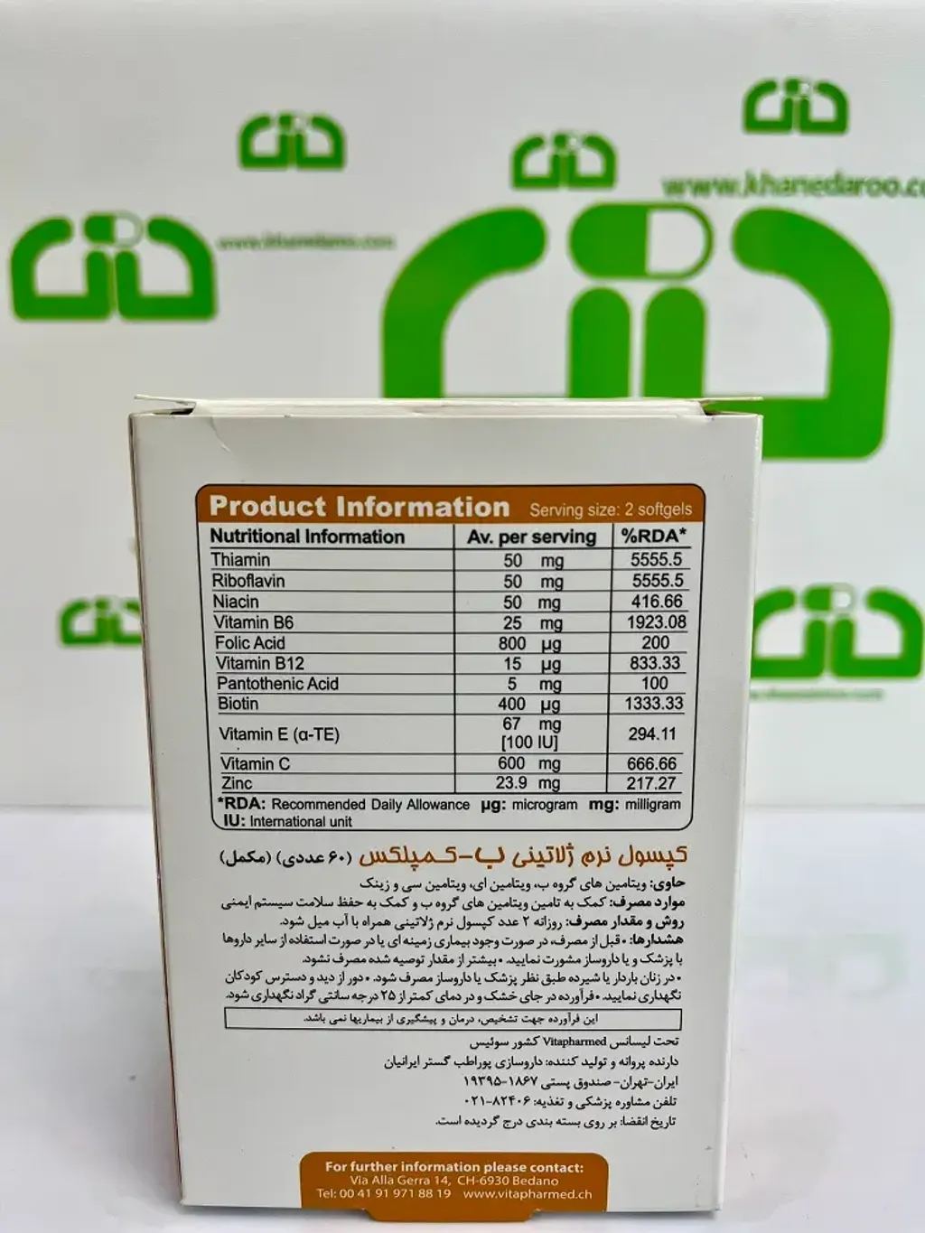 برای خرید و مشاهده قیمت کپسول ب کمپلکس ویواتیون میتوانید به داروخانه آنلاین خانه دارو مراجعه کنید. همچنین اگر در شرق تهران زندگی میکنید، امکان تهیه حضوری این محصول از داروخانه خانه دارو در شهر پردیس برای شما فراهم است.